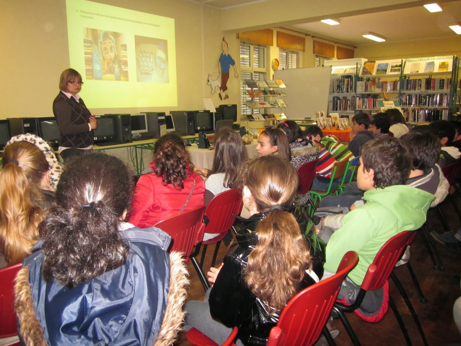 No dia 6 de fevereiro, a encarregada de educação de uma aluna do 7ºA, a convite da diretora de turma da mesma e da Biblioteca Escolar, dinamizou uma palestra para as turmas do 7ºA e do 6ºD, sobre ambiente, concretamente, fez a sensibilização e esclareceu dúvidas sobre o papel da política dos 3R - Reduzir, Reutilizar, Reciclar. A sala esteve cheia de alunos motivados, atuais e futuros promotores da pegada ecológica!